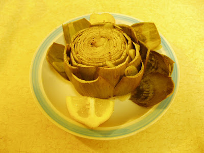 蒸煮大概45分鍾等到整顆artichoke變到有點暗綠...用筷子搓一下